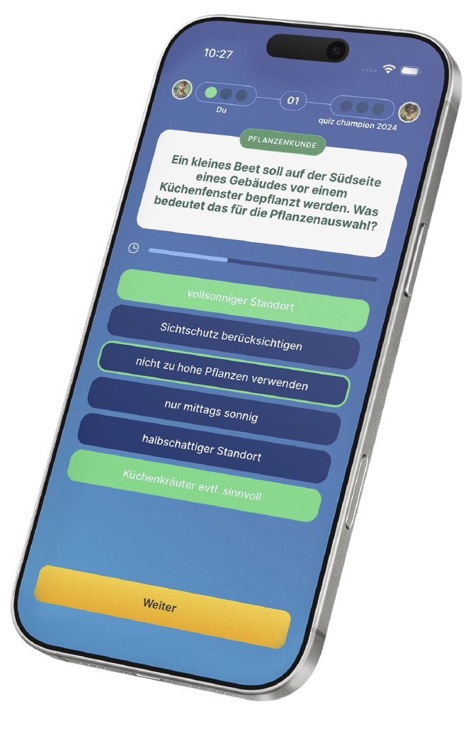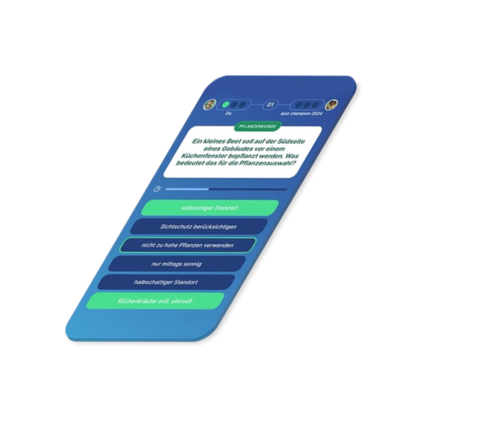 Für die Inhalte verantwortlich ist „Die Pflanzenschule GbR“. Die Fragen werden ehrenamtlich von Expert:innen aus Betrieben der grünen Branche entwickelt. Stetig werden Fragen ergänzt und das Wissen in der App erweitert.