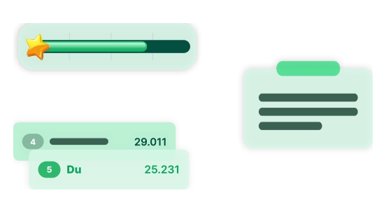 Mit Green Learning wächst dein Wissen wie deine Erfahrung. Jedes richtig beantwortete Quiz, jedes abgeschlossene Kapitel bringt dich auf ein neues Level. So siehst du in den Statistiken jederzeit, wie weit du schon gekommen bist und kannst deine Fortschritte per Button einfach teilen.